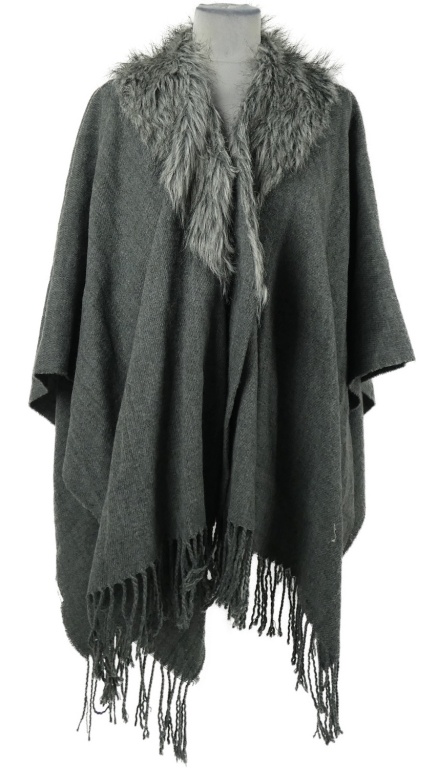 Dámský šedý svetrový pléd s kožešinou