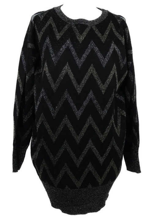 • Dámska čierno-strieborná vzorovaná svetrová tunika s prestrihmi Et Vous