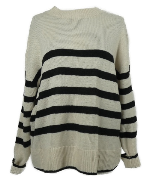 Dámsky smetanovo-čierny pruhovaný oversized sveter H&M