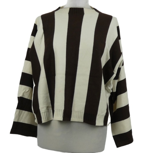 Dámsky smetanovo-hnedý pruhovaný sveter