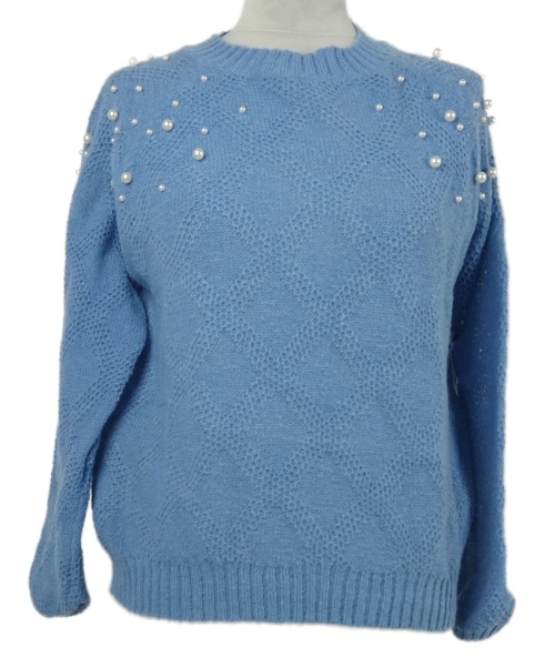 Dámsky svetlomodrý sveter s korálkami Shein