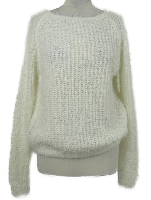 Dámsky biely chlpatý sveter