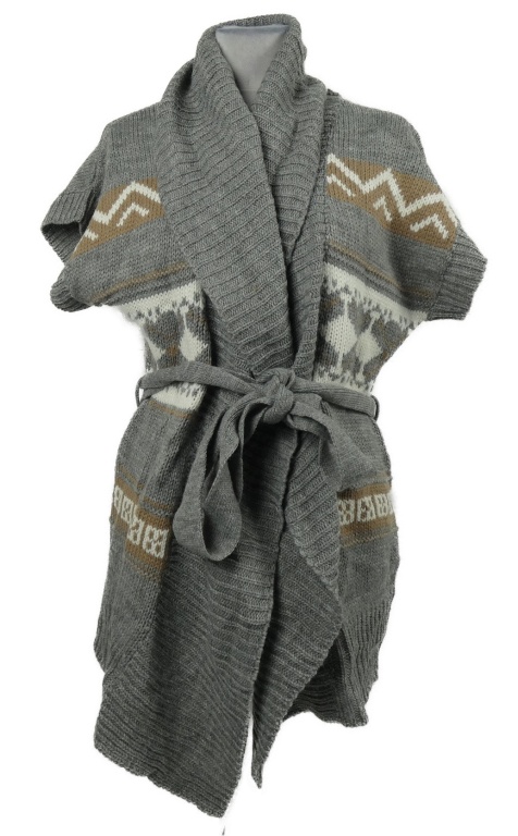 • Dámský šedý svetrový pléd so vzorom a opaskom Romeo & Juliet