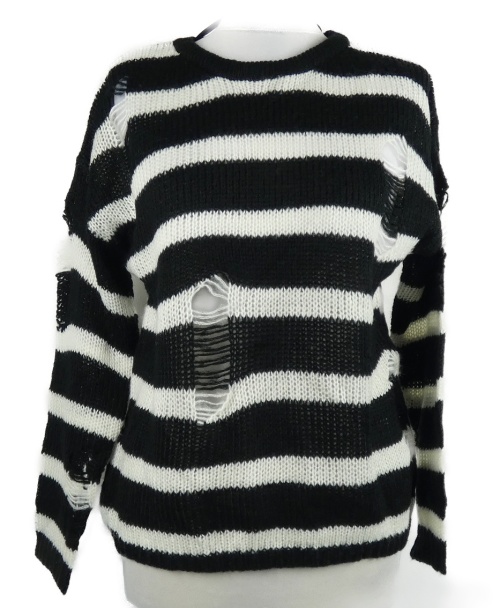 Dámsky čierno-biely pruhovaný sveter s dierami Primark