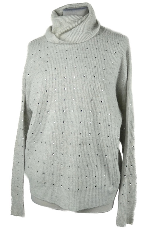 Dámsky sivý sveter s kamienkami a rolákom River Island