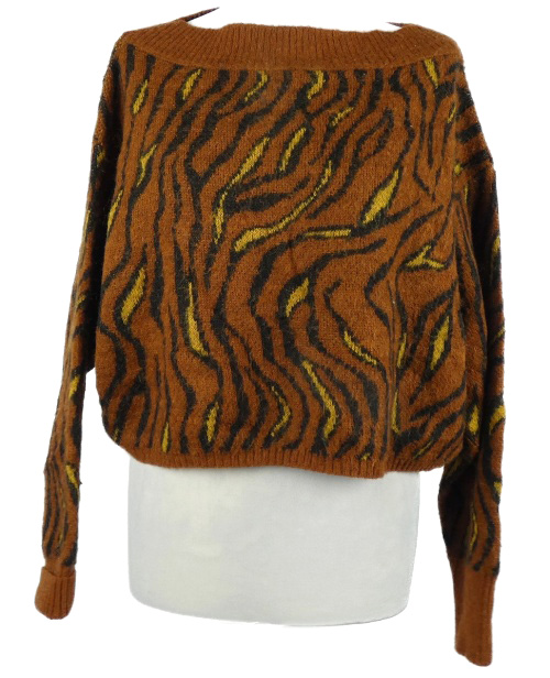 Dámsky skořicovo-čierny vzorovaný crop sveter Benetton