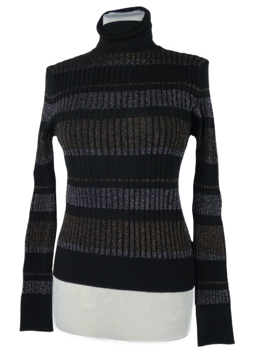 Dámsky čierno-stříbrno-bronzový rebrovaný sveter s rolákom