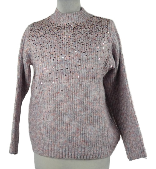 Dámsky ružovo-modrý melírovaný sveter s flitrami Papaya