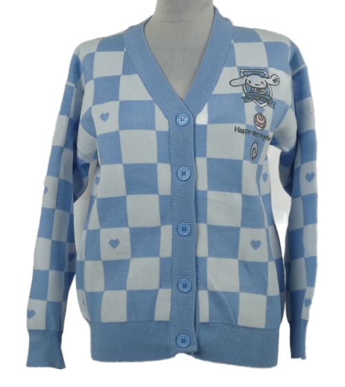 • Dámsky světlemodro-biely kockovaný prepínaci sveter s obrázkom