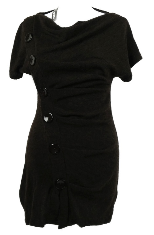 Nové - Dámska kávová svetrová šatová tunika s gombíkmi Graffic