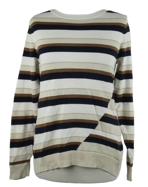 Dámsky smetanovo-tmavomodro-béžový pruhovaný sveter