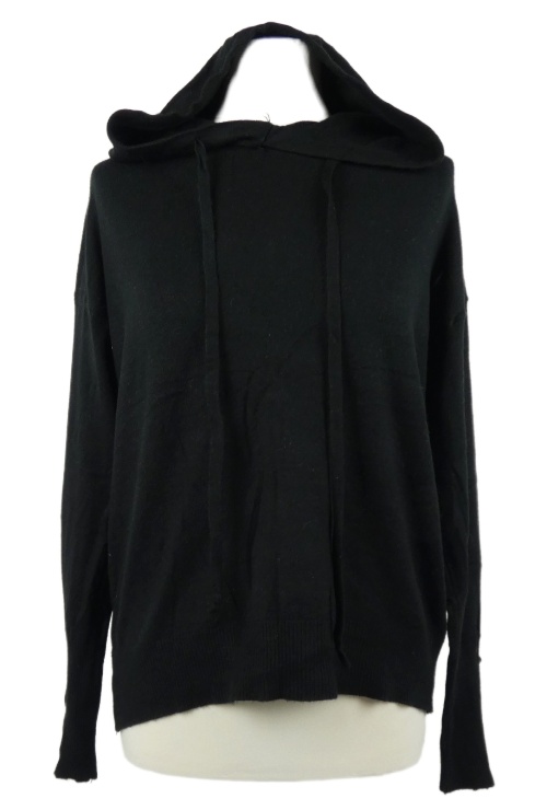 Dámsky čierny sveter s gombíky a kapucňou