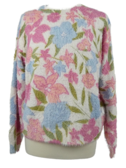 Dámsky bielo-farebný kvetovaný chlpatý sveter Nutmeg