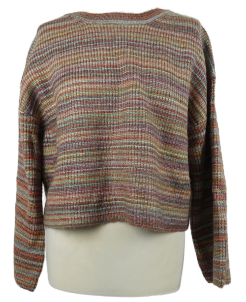 Nové - Dámsky vínovo-modro-zelený prúžkovaný crop sveter Primark