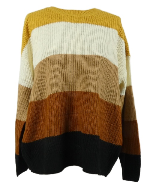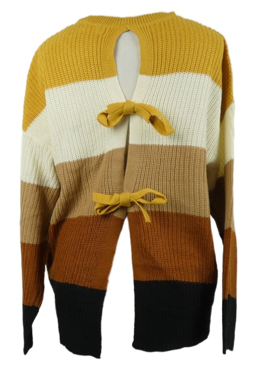 Dámsky farebně pruhovaný sveter s mašlemi na zádech