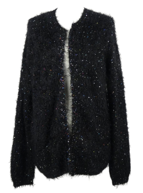 Dámsky čierny chlpatý svetrový cardigán s flitrami Monsoon