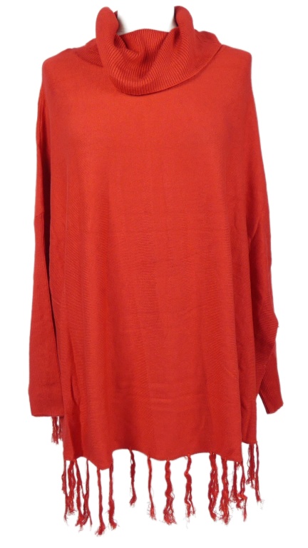 Dámsky červený sveter s rolákom a strapcemi Bonprix