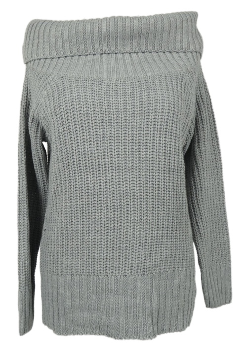 Dámsky sivý sveter s komínovým golierom