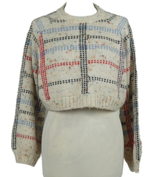 Dámsky béžovo-farebný vzorovaný crop vlnený sveter Topshop
