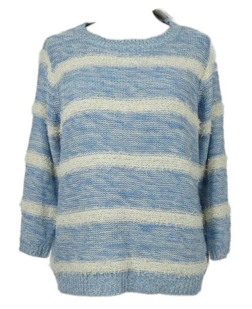 Nové - Dámsky modro-biely pruhovaný chlpatý sveter F&F