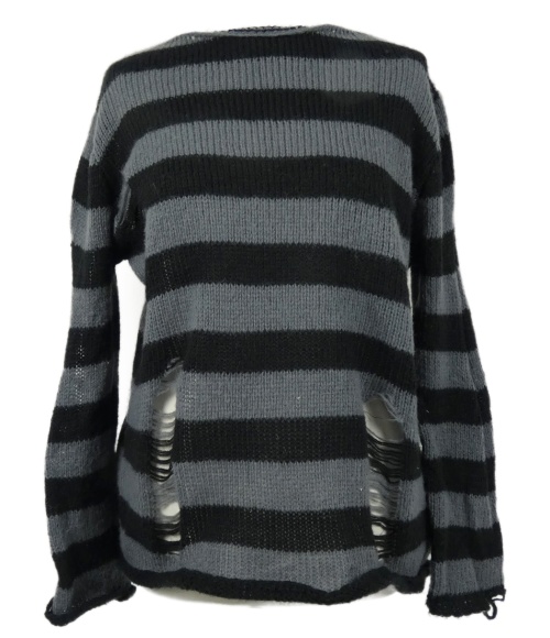 Dámsky sivo-čierny pruhovaný sveter s prestrihmi