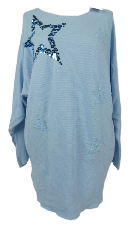 • Nové - Dámska svetlomodrá rebrovaná svetrová tunika s hviezdičkami Paramour