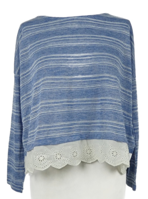 • Nové - Dámske svetlomodré melírované úpletové tričko s madeirovým volánikom Atmosphere