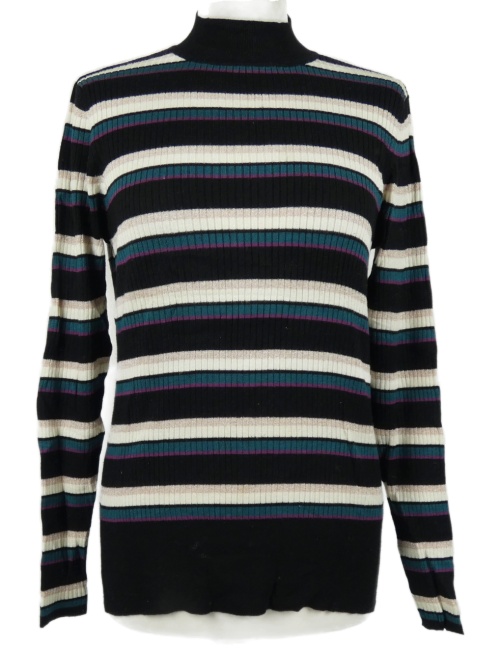 • Dámsky čierno-barevený pruhovaný rebrovaný sveter so stojačikom F&F