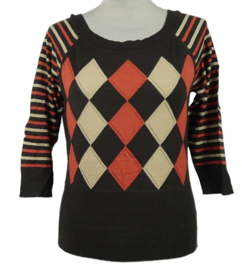 Dámsky hnedo-červeno-béžový károvaný ľahký sveter Next