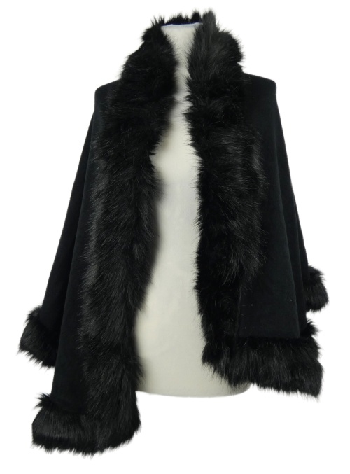 Dámské černé pončo na zapínání s kožúškom Soul