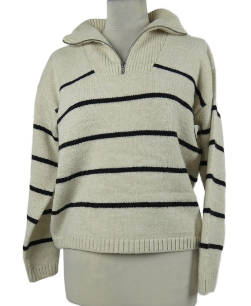 Dámsky béžovo-čierny pruhovaný sveter s golierikom George