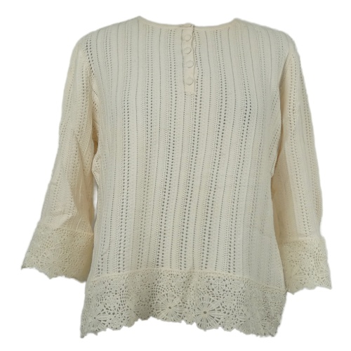 Dámsky smotanový vzorovaný sveter s čipkou