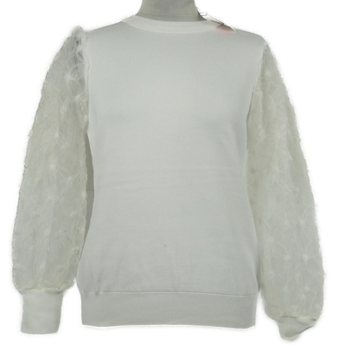 Nové - Dámsky biely sveter s tylovymi vzorovanymi rukávy Savida