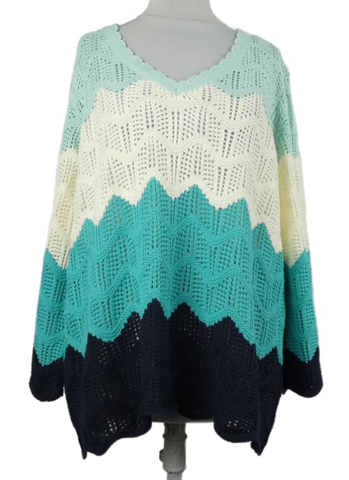 Dámsky tyrkysovo-bielo-tmavomodrý vzorovaný ažurový sveter Roman