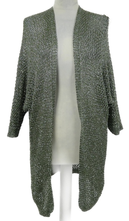 • Nové - Dámsky khaki trblietavý háčkovaný svetrový cardigán