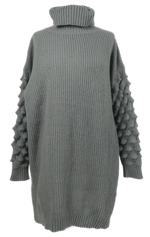 • Dámská sivá svetrová tunika so vzorovanymi rukávy a rolákom Shein