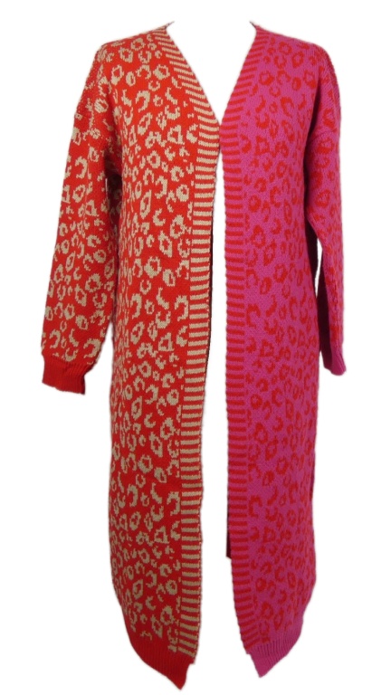 Dámsky červeno-ružový vzorovaný svetrový cardigán