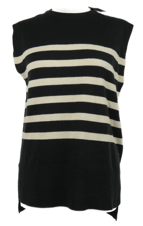 Nové - Dámska čierno-smotanová pruhovaná svetrová vesta Papaya