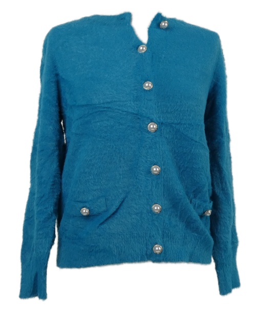 Dámsky tyrkysový chlpatý sveter s gombíky Evelin