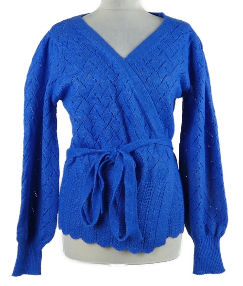 Dámsky zafírový ažurový zavinovací sveter s opaskom Shein
