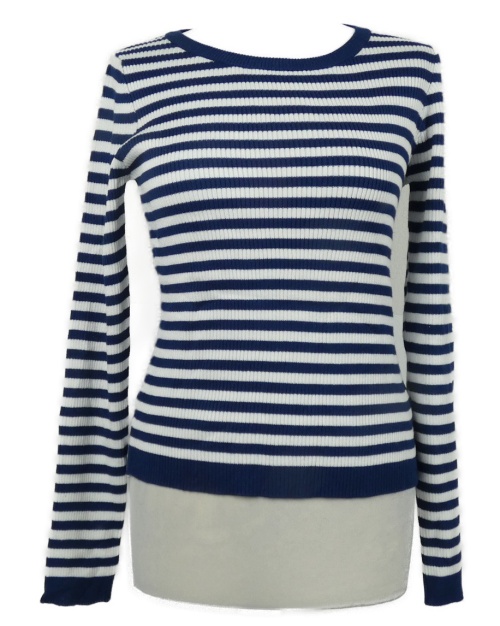 Dámsky tmavomodro-biely pruhovaný rebrovaný sveter Primark