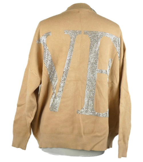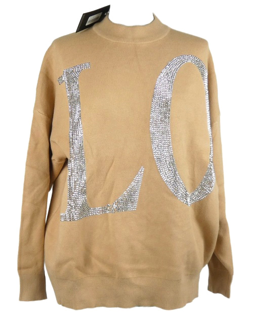 Nové - Dámsky béžový sveter s nápisem z kamínků Enzoria