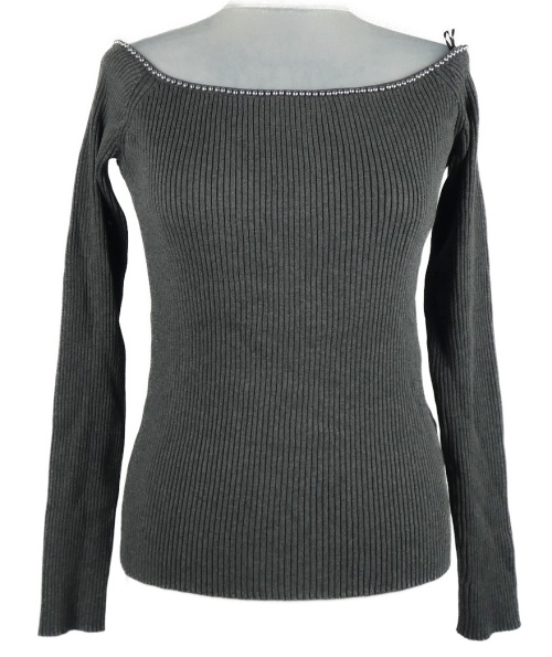 • Nové - Dámsky sivý rebrovaný sveter s lodičkovým výstřihem s korálkami H&M
