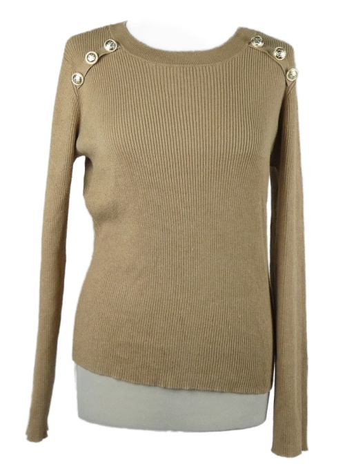 Dámsky béžový rebrovaný sveter s gombíky Madison+Hudson