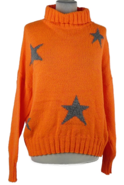 Dámsky oranžový hviezdičkovaný sveter s rolákom