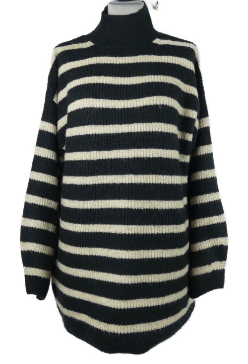 • Dámsky tmavomodro-smotanový pruhovaný dlhý sveter so stojačikom George