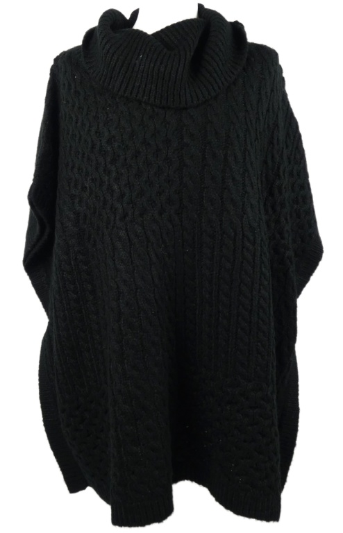 • Dámske čierne vzorované svetrové pončo s komínovým golierom