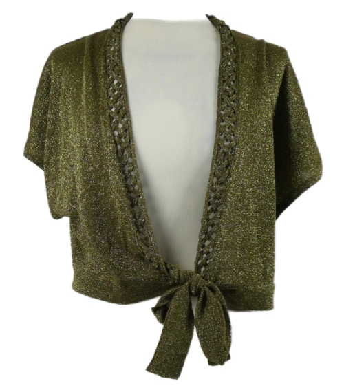 Dámske khaki trblietavé svetrové bolerko s uzlom David Emanuel