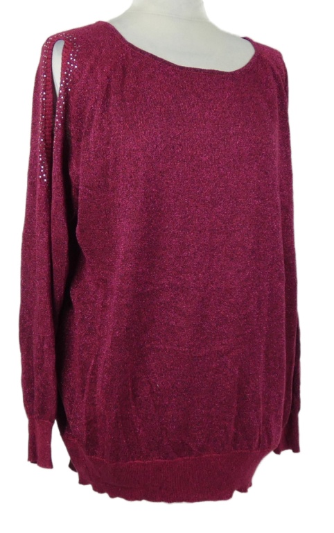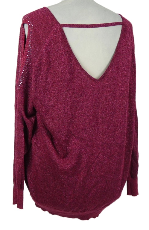 • Dámsky purpurový trblietavý voľné ý sveter s prestrihmi a kamienkami Matalan