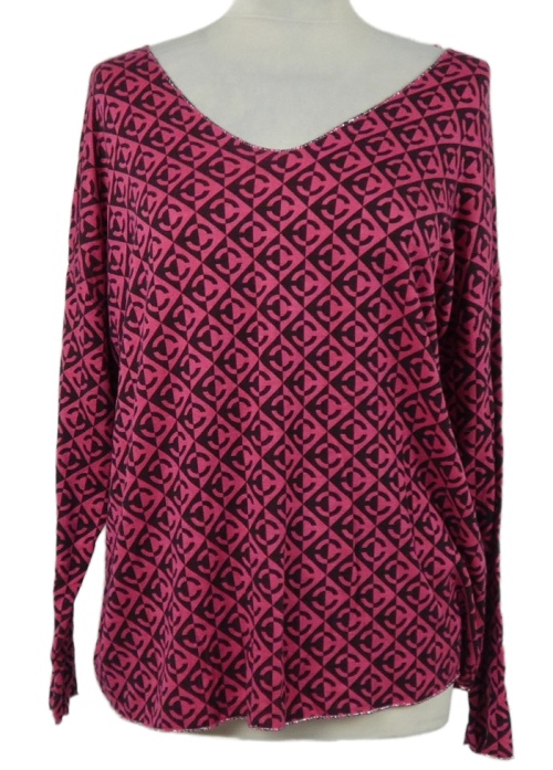 Nové - Dámsky tmavorůžovo-čierny vzorovaný ľahký sveter